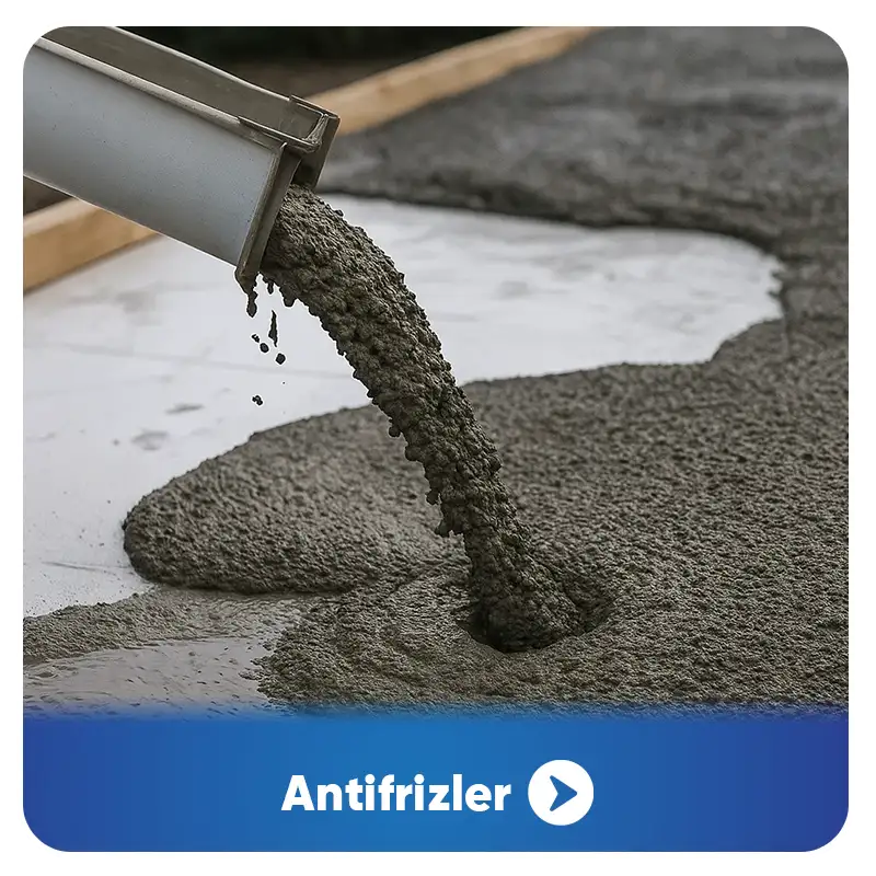 Antifriz katkıları, soğuk hava koşullarında betonun donma riskini azaltmak için kullanılır. Düşük sıcaklıklarda bile priz almasını sağlar ve çatlamayı önler.